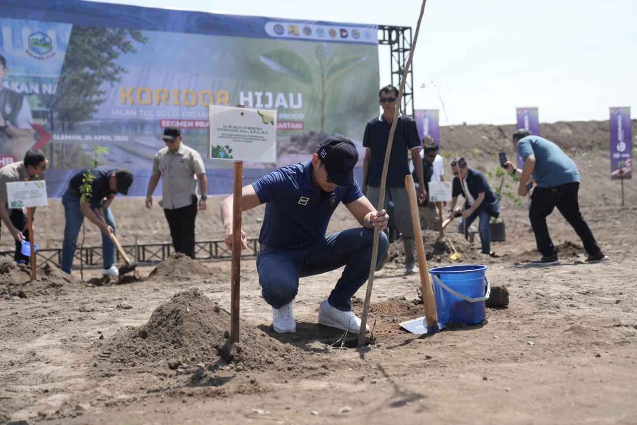 Newstv.id, Sleman – Wakil Bupati Sleman, Daerah Istimewa Yogyakarta (DIY), Danang Maharsa bersama Menteri Koordinator Bidang Infrastruktur dan Pembangunan Kewilayahan (Menko IPK), Agus Harimurti Yudhoyono karib disapa AHY, melakukan penanaman pohon trembesi di Koridor Hijau ruas Tol Prambanan-Purwomartani, Sabtu (25/4/2026).