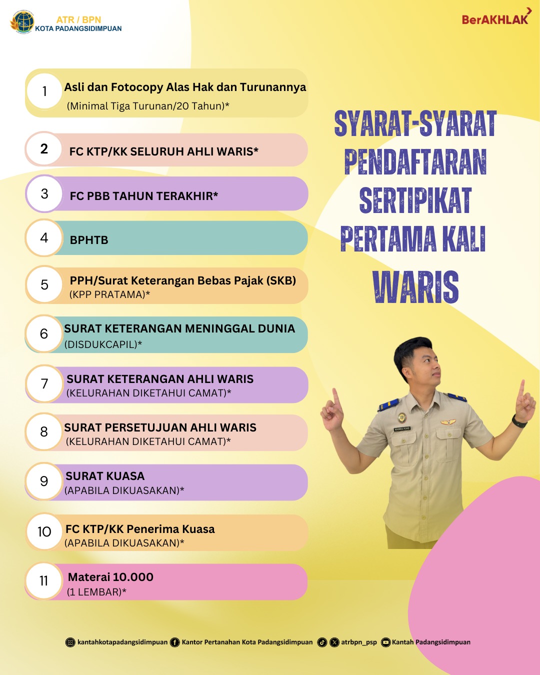 Melalui informasi resmi yang disampaikan kepada masyarakat, Kantor Pertanahan Kota Padangsidimpuan menegaskan bahwa pendaftaran sertipikat waris menjadi tahapan penting untuk mencegah sengketa tanah, memperjelas status hukum kepemilikan, serta mendukung tertib administrasi pertanahan.