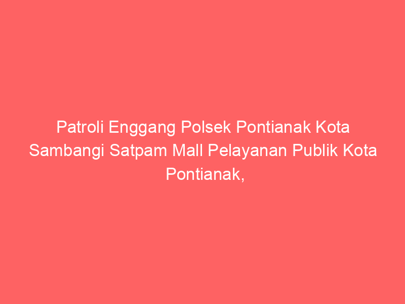 Pontianak, Polda Kalbar,– Untuk memperkuat sinergi dalam menjaga keamanan dan ketertiban di lingkungan pelayanan publik, personel Patroli Enggang Polsek Pontianak Kota melaksanakan kegiatan sambang ke Mall Pelayanan Publik (MPP) Kota Pontianak yang terletak di Jalan Kapten Marsan.