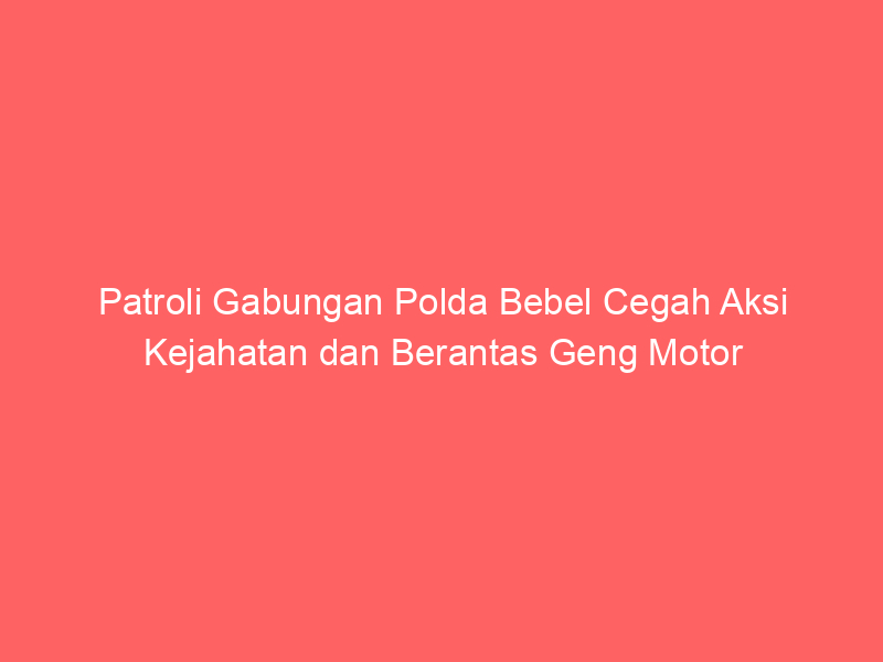 Ipda heru juga menambahkan bahwa patroli yang dilakukan ini dalam rangka menindaklanjuti arahan Kapolda Babel dalam memberantas geng motor yang meresahkan masyarakat. Oleh karena itu dalam pelaksanaannya difokuskan pada kawasan yang dianggap rawan terjadi tindak pidana, serta kawasan yang sering dijadikan tempat untuk anak-anak remaja berkumpul.