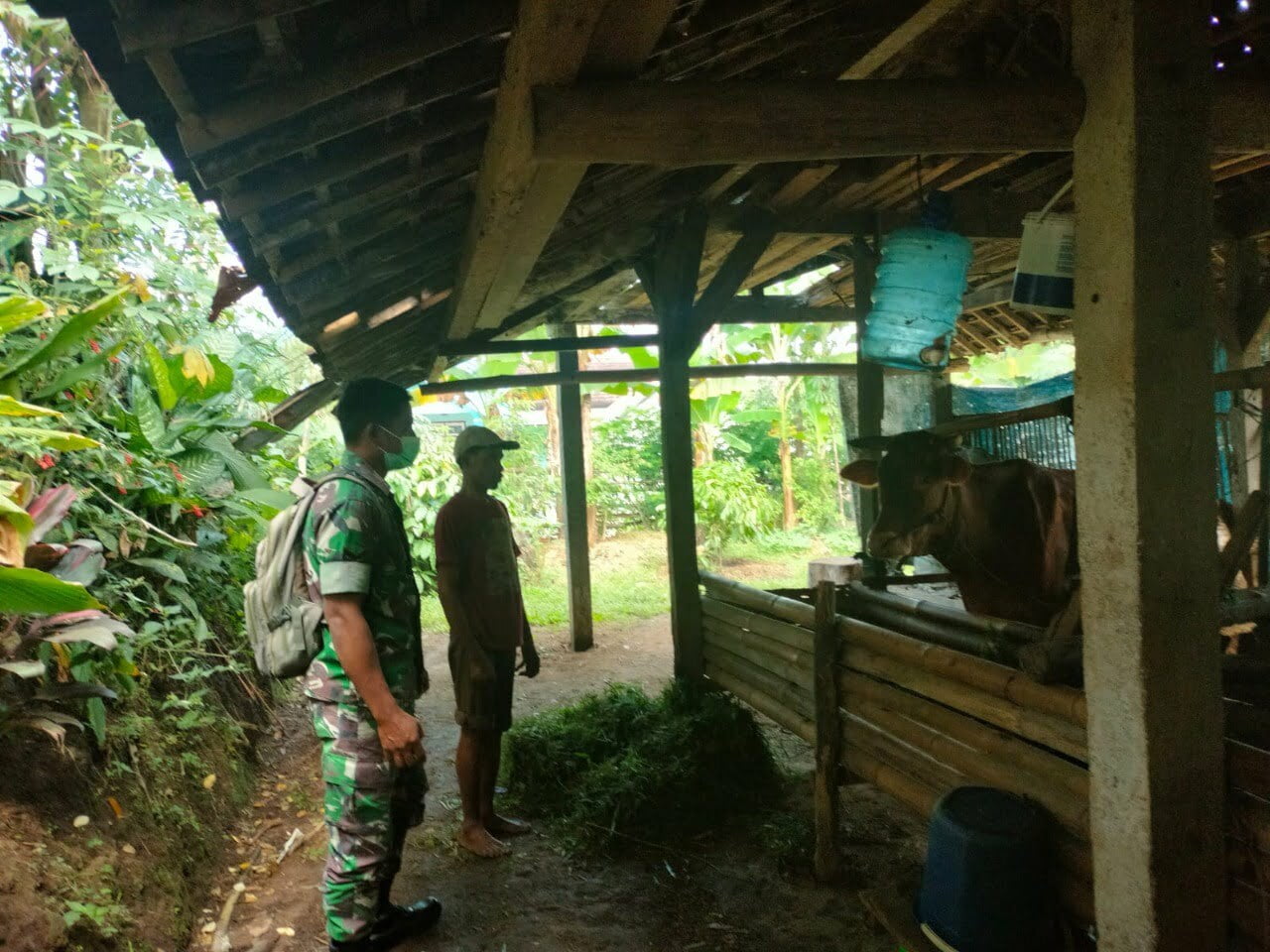 NewsTv, Blitar – Sebagai upaya untuk mencegah terjadinya penyebaran Penyakit Mulut dan Kuku (PMK) hewan ternak sapi di wilayah, Babinsa Koramil Tipe B 0808/13 Doko Kodim 0808/Blitar Serda Anas Sugiarto, melaksanakan kegiatan pemantauan dan pengecekan hewan ternak sapi milik warga binaannya, di Desa Genengan Kec. Doko Kab. Blitar, Rabu (9/11/2022).