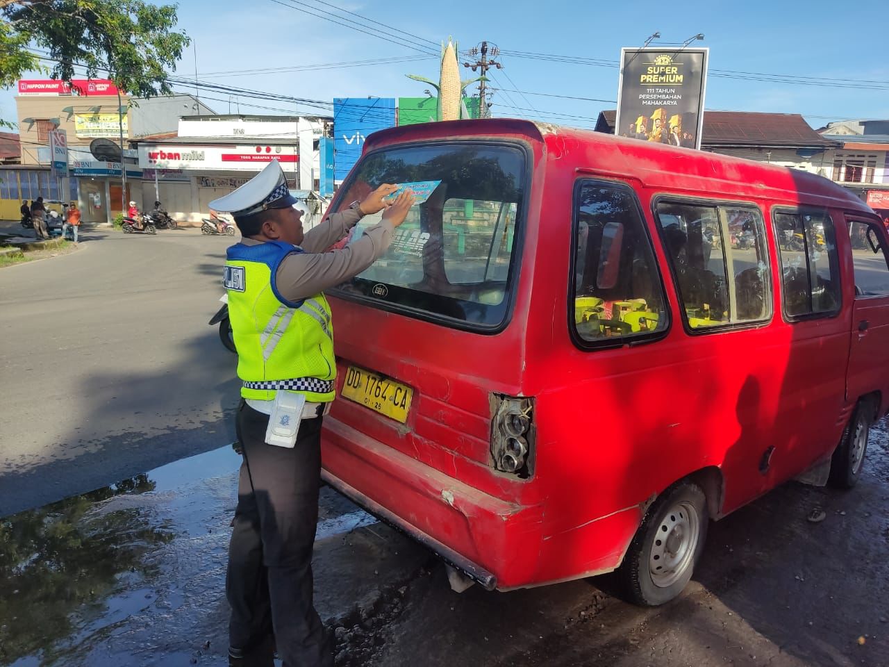 Personel Satlantas membagikan brosur dan stiker yang berisi imbauan tentang keselamatan berlalu lintas. Imbauan tersebut antara lain, Gunakan helm SNI untuk pengendara dan penumpang sepeda motor, gunakan sabuk pengaman bagi pengemudi dan penumpang mobil, patuhi rambu-rambu lalu lintas, tidak menggunakan handphone saat berkendara, mengemudi dengan kecepatan yang wajar, melengkapi surat-surat kendaraan, tidak melawan arus, dan tidak menggunakan knalpot yang tidak sesuai spesifikasi teknis (brong).