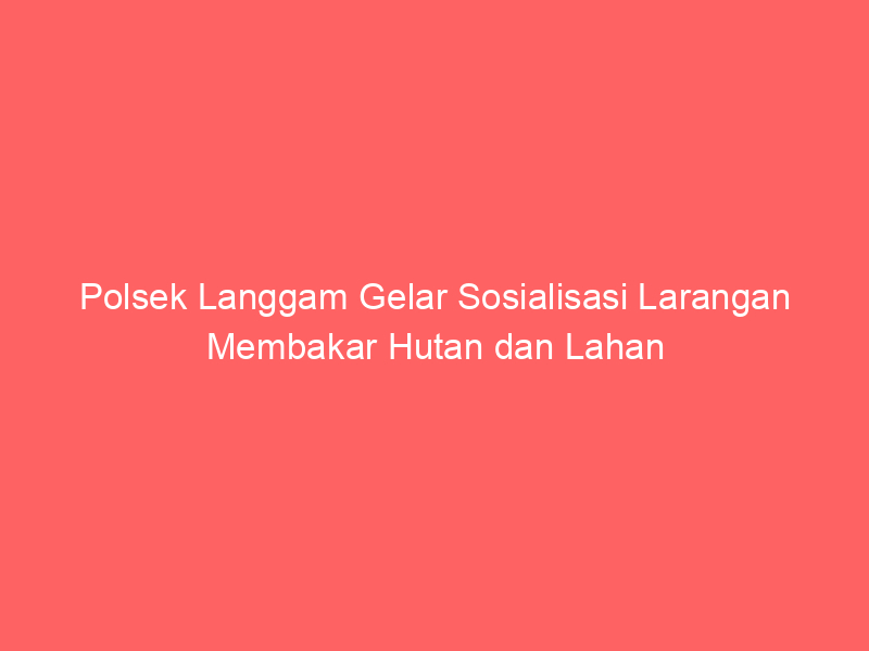 Polsek Langgam melaksanakan kegiatan sosialisasi larangan membakar hutan dan lahan (Karhutla) di wilayah hukum Polsek Langgam pada hari Selasa, 1 April 2025, sekitar pukul 10.00 WIB. Kegiatan ini bertujuan untuk meningkatkan kesadaran masyarakat mengenai bahaya dan dampak yang timbul akibat kebakaran hutan dan lahan.