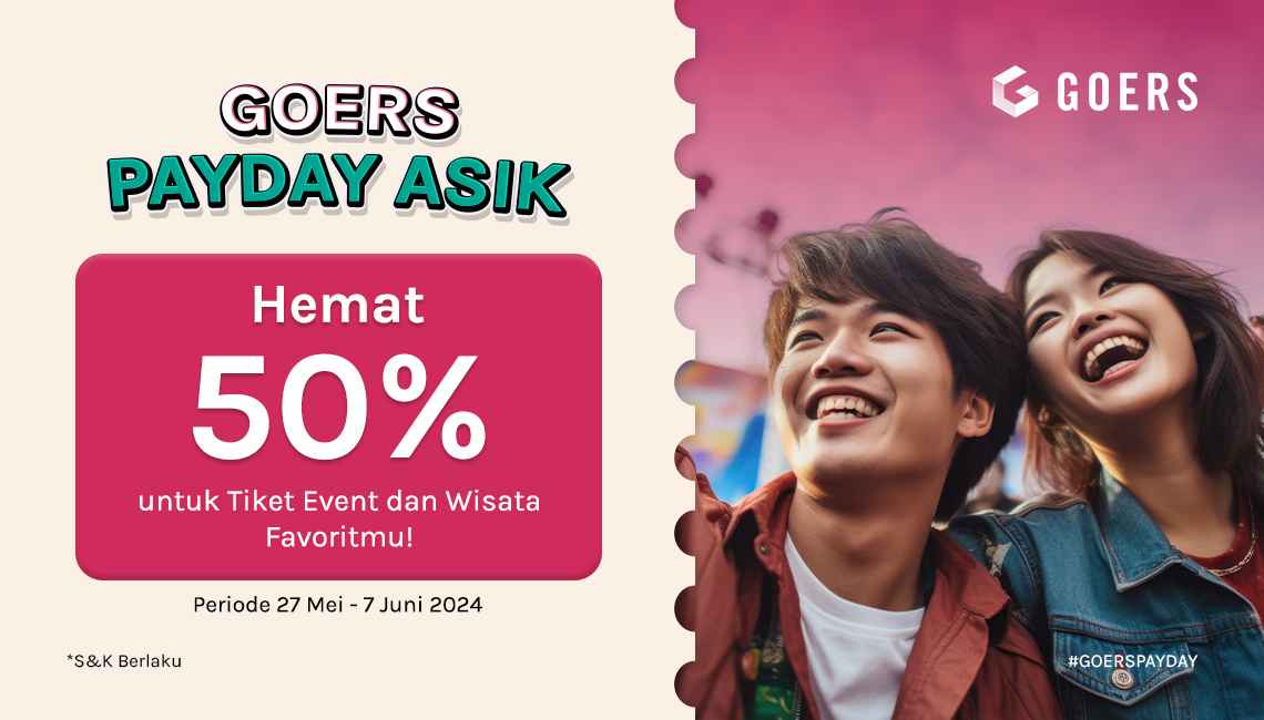 Nikmati GOERS PAYDAY ASIK, yang punya diskon sampai 50% untuk setiap transaksi tiket wisata maupun event di Goers.
