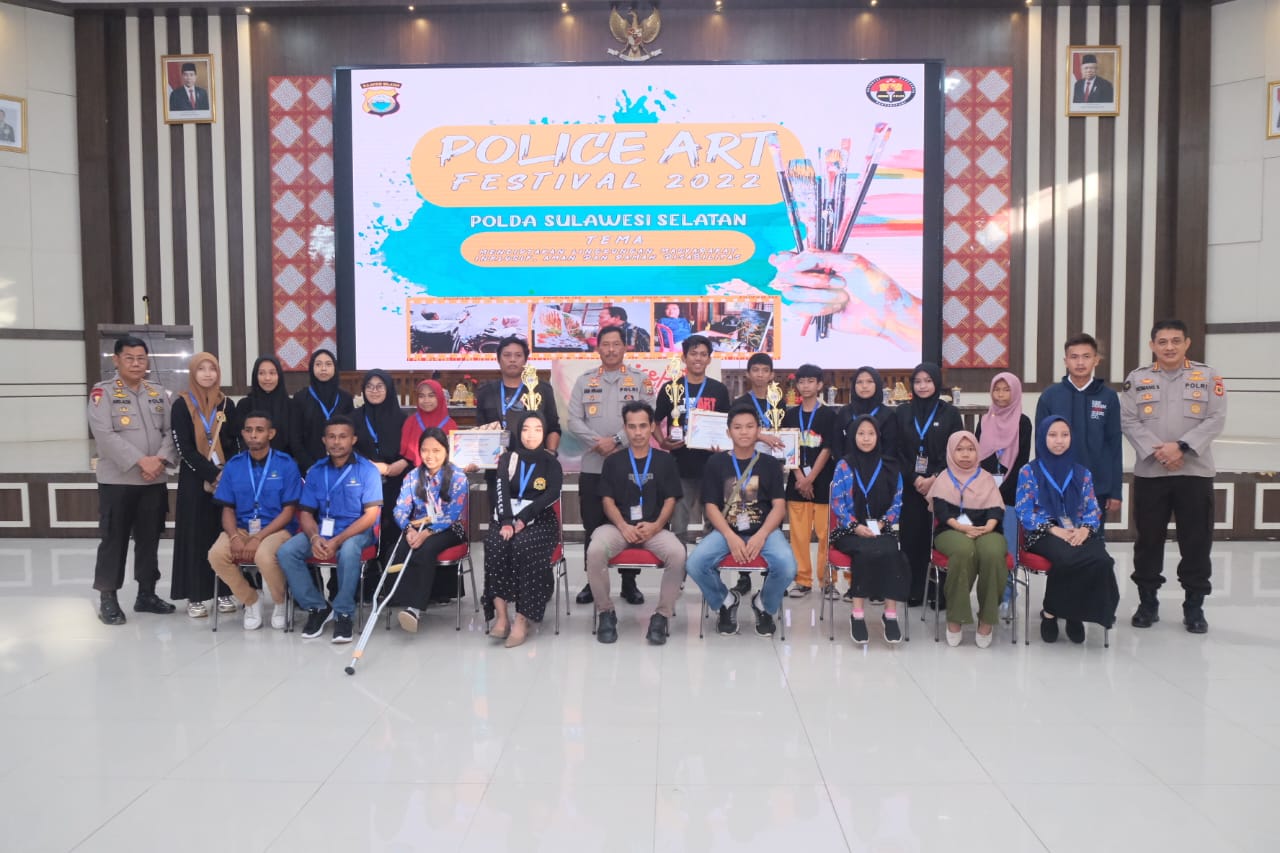 Adapun hasil Lomba dalam Police Art Festival 2022 Polda Sulawesi Selatan, Juara 1 Rahmat Hidayat (Jeneponto), Juara 2 M Isal (Bulukumba) dan Juara 3 Nero Ali Zaenal Assajad (Bone)